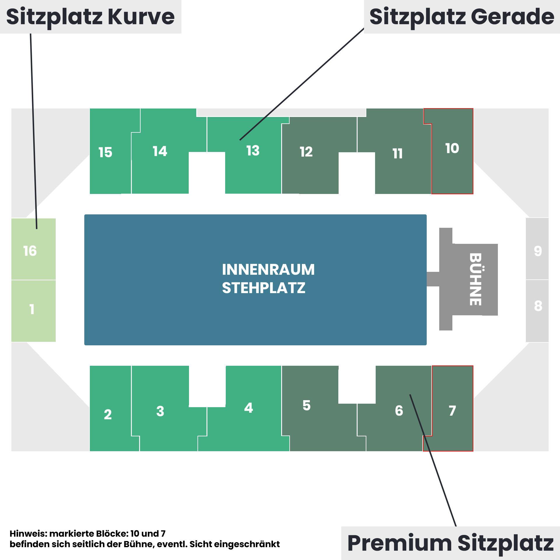 • Wo befinden sich die Plätze: Ihre Sitzplätze/Stehplätze gehören genau zu der Kategorie, die Sie gewählt haben und werden nach unserem Bestplatzverfahren vergeben. Ihre Sitzplätze befinden sich mindestens paarweise nebeneinander. Garantiert!