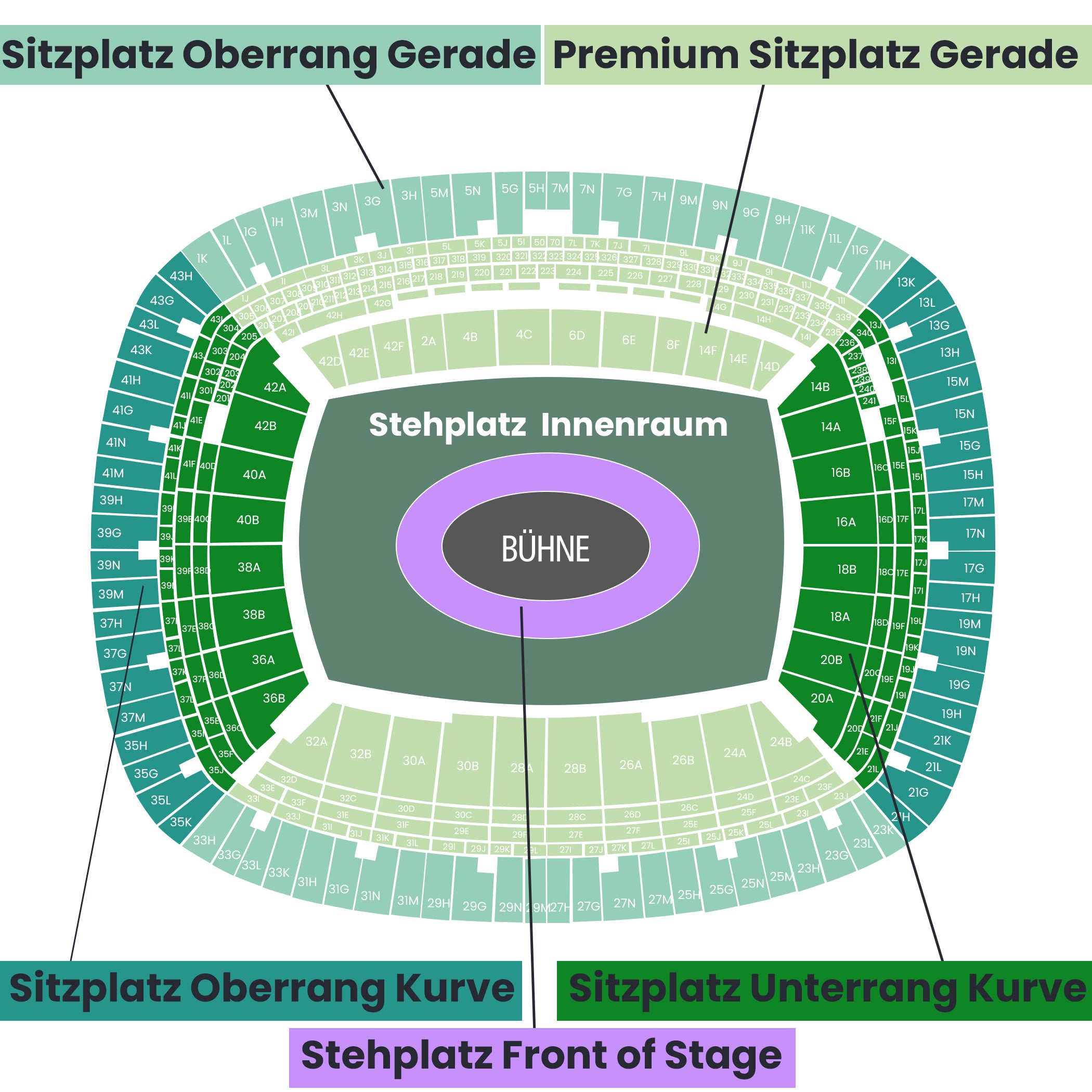 - Wo befinden sich die Plätze: Ihre Sitzplätze/Stehplätze gehören genau zu der Kategorie, die Sie gewählt haben und werden nach unserem Bestplatzverfahren vergeben. Ihre Sitzplätze befinden sich mindestens paarweise nebeneinander. Garantiert!