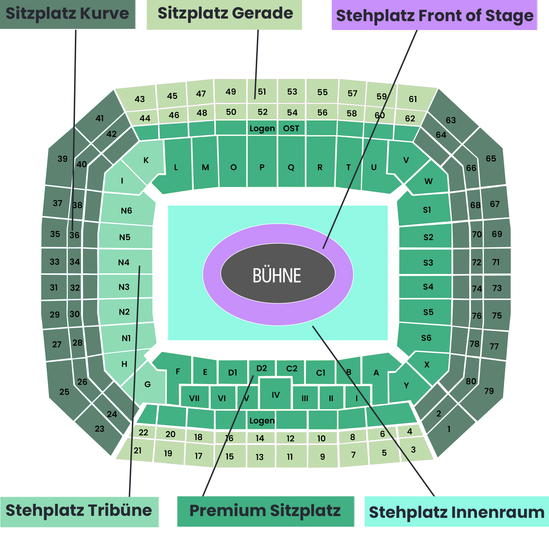 - Wo befinden sich die Plätze: Ihre Sitzplätze/Stehplätze gehören genau zu der Kategorie, die Sie gewählt haben und werden nach unserem Bestplatzverfahren vergeben. Ihre Sitzplätze befinden sich mindestens paarweise nebeneinander. Garantiert!