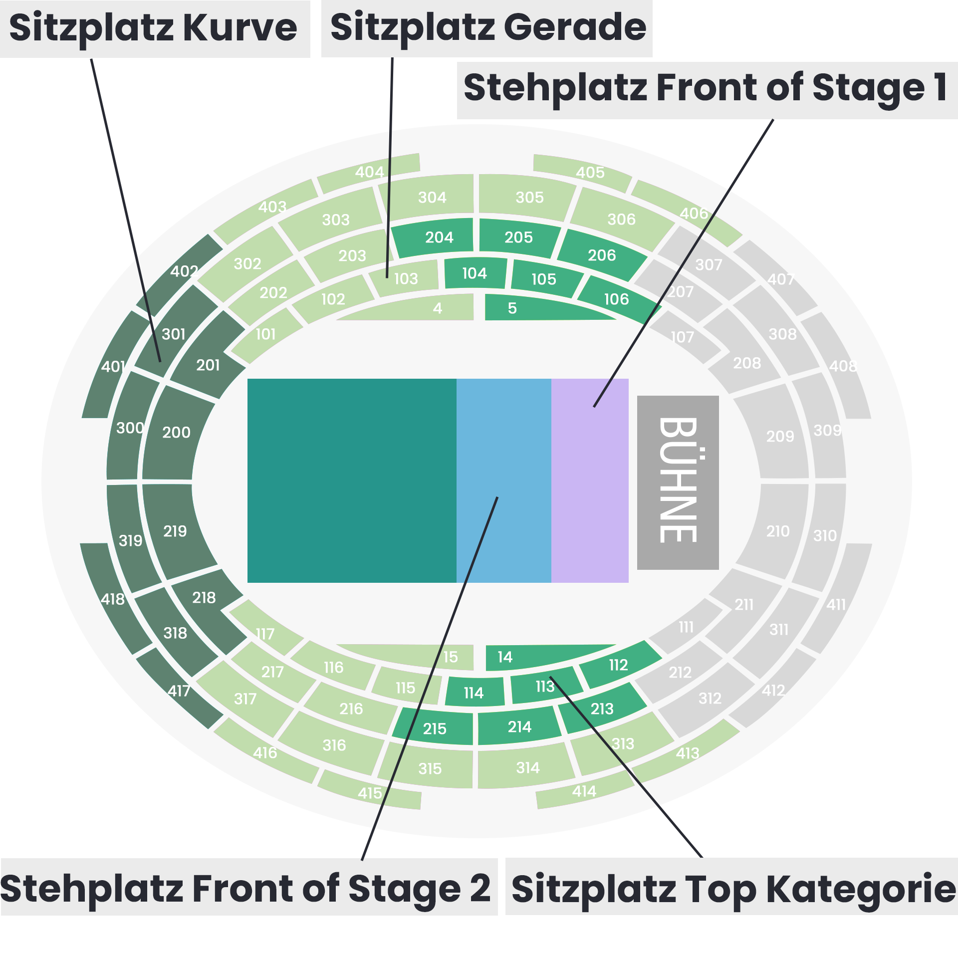 - Wo befinden sich die Plätze: Ihre Sitzplätze/Stehplätze gehören genau zu der Kategorie, die Sie gewählt haben und werden nach unserem Bestplatzverfahren vergeben. Ihre Sitzplätze befinden sich mindestens paarweise nebeneinander. Garantiert!