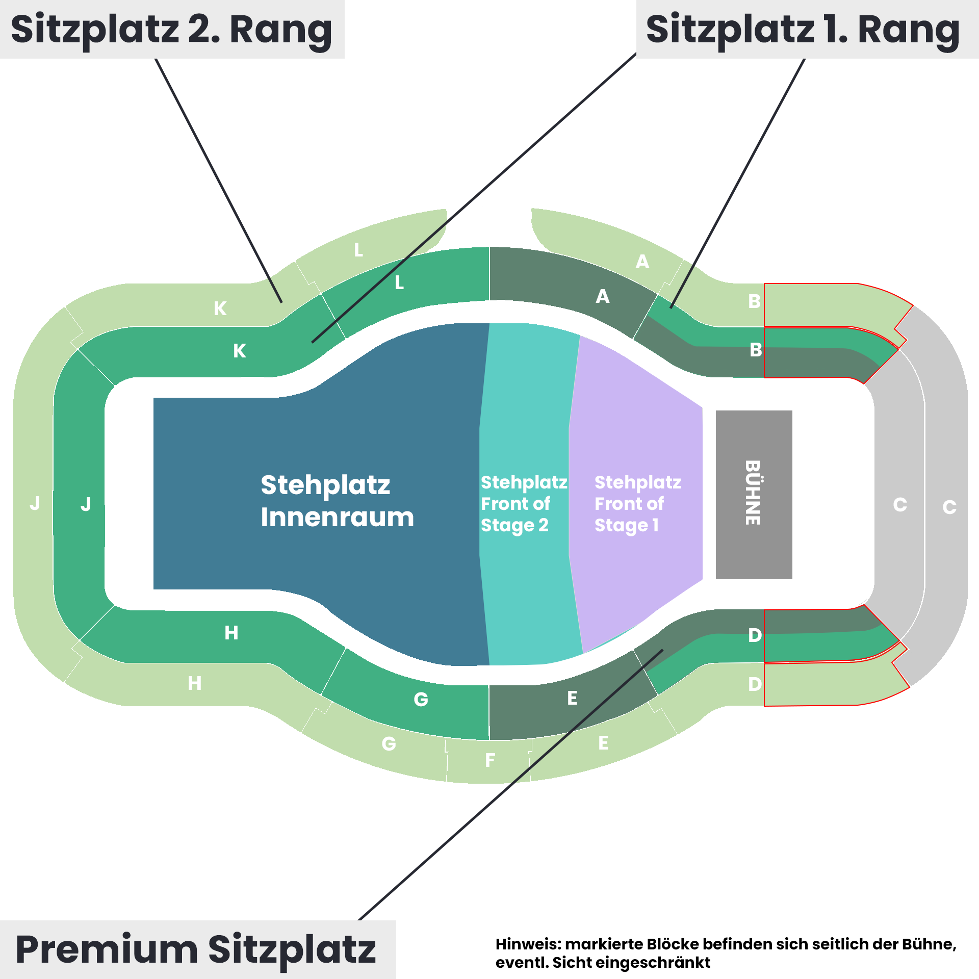 - Wo befinden sich die Plätze: Ihre Sitzplätze/Stehplätze gehören genau zu der Kategorie, die Sie gewählt haben und werden nach unserem Bestplatzverfahren vergeben. Ihre Sitzplätze befinden sich mindestens paarweise nebeneinander. Garantiert!